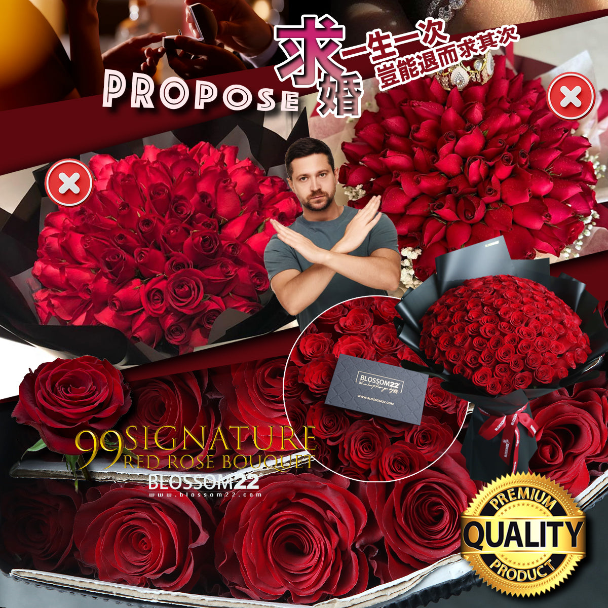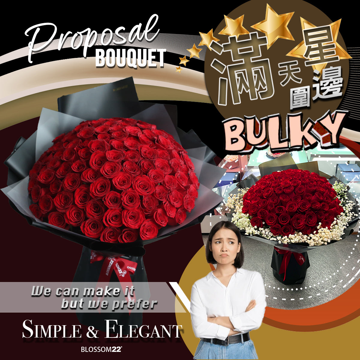 如正為花束大小問題而在思索當中,可以給你一個思路。「假如女生一生中最少收一次 99 枝玫瑰,那應該是那個時刻最為合適?」生日?週年?若非求婚,更待何時?
