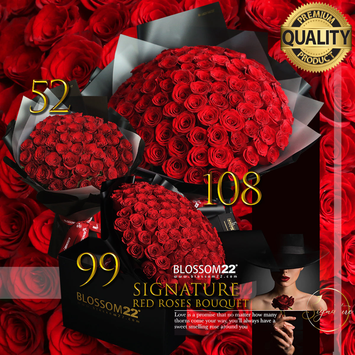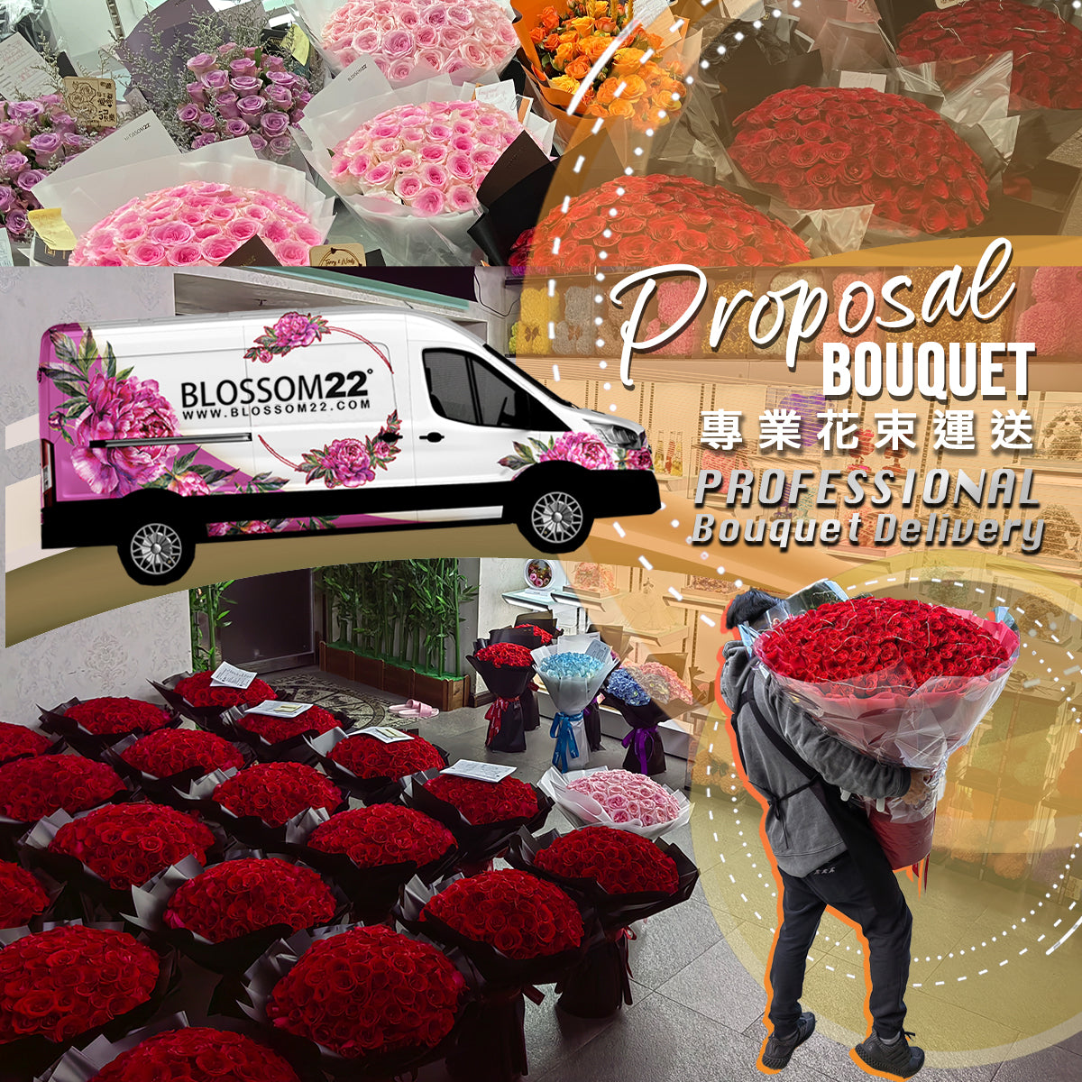 52|99|108 枝多款選擇,我們除重視花束扎實的手感,亦堅持花束都能站立擺放觀賞。