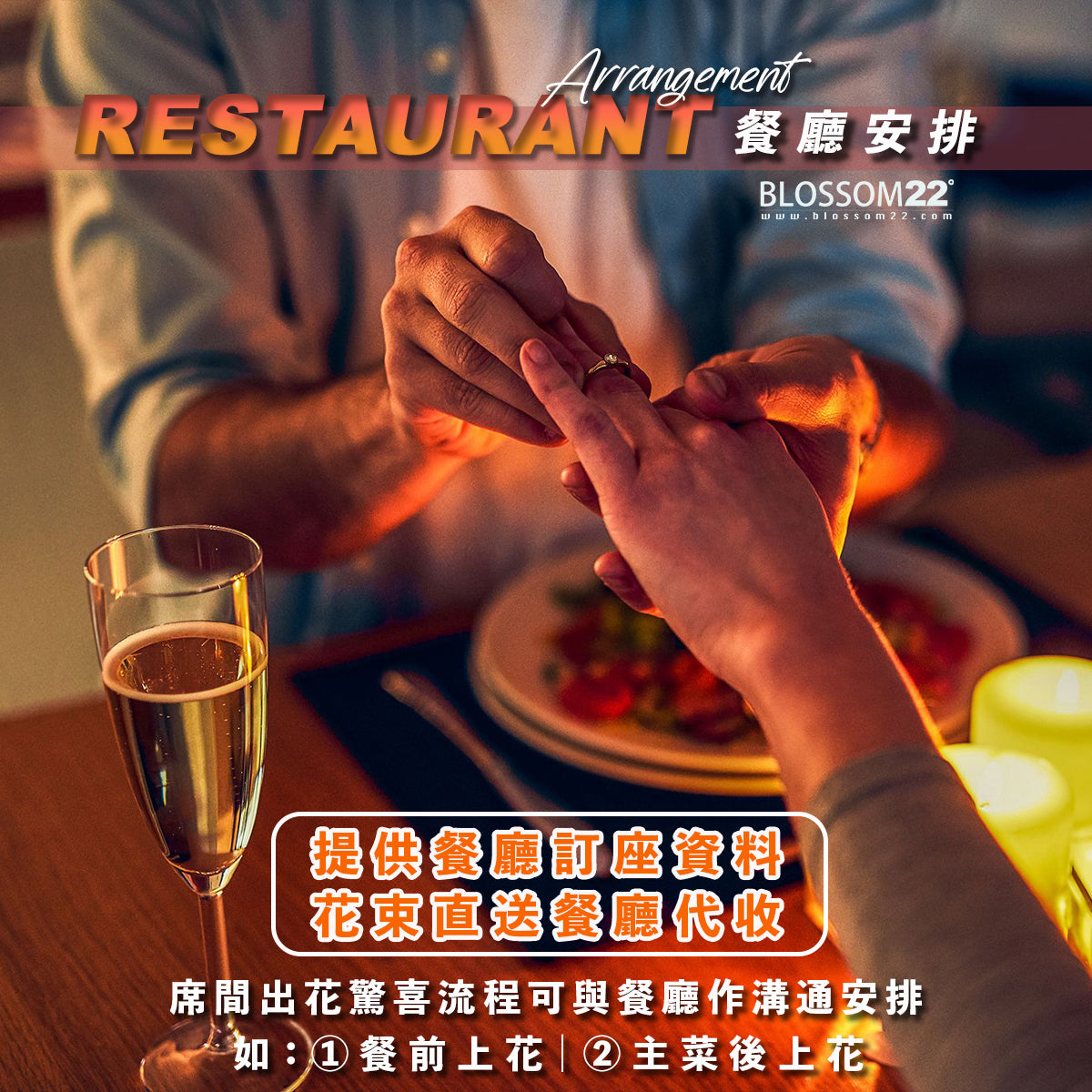 客戶無需費神自取花束先行送達餐廳,花束會於閣下到達前直送餐廳代收。