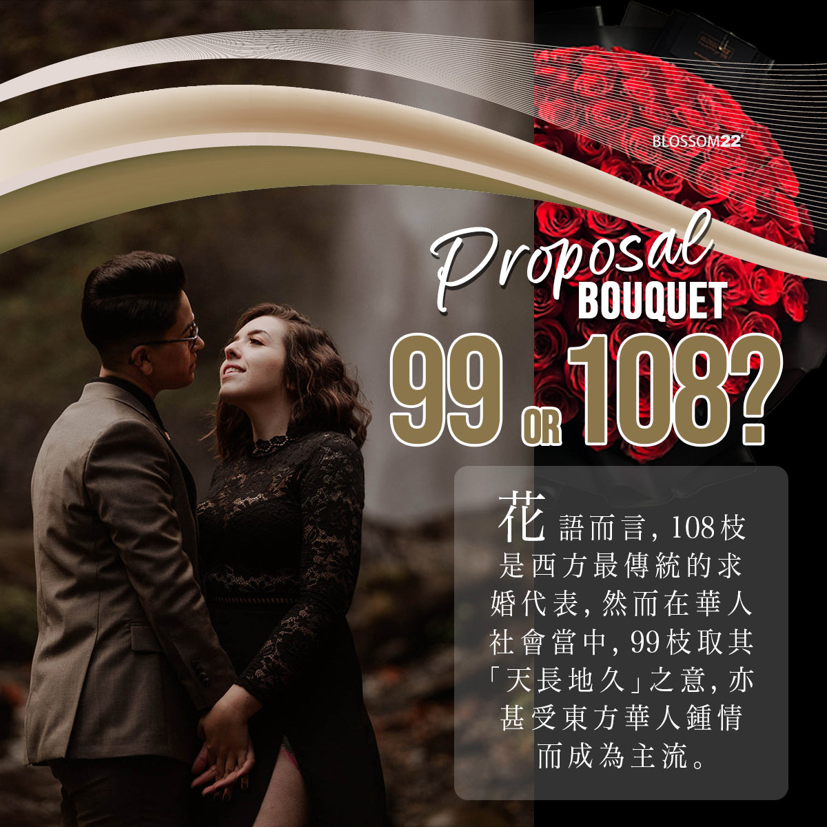 ◆99 枝花束在華人社會當中,因取其「天長地久」之意,亦甚受東方人鍾情而成為求婚花的主流。
